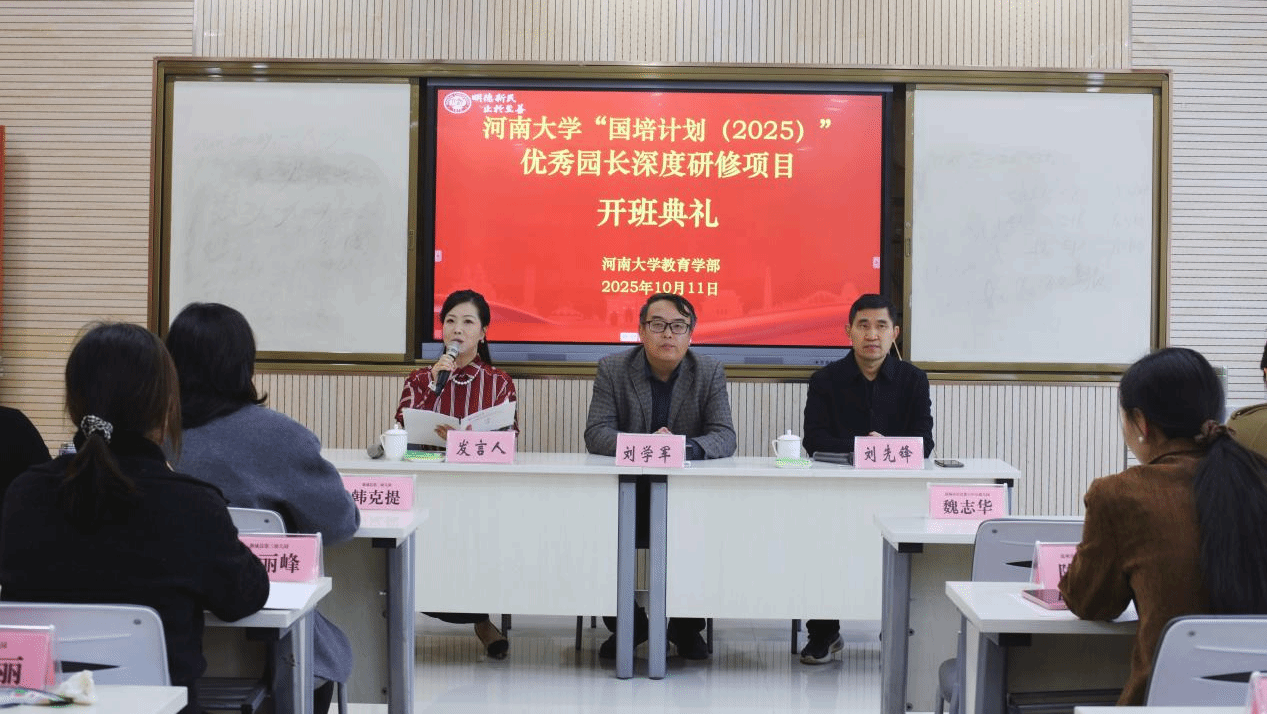 10月11日上午,河南省“国培计划(2025)”优秀园长深度研修项目开班典礼在河南省地方税务干部管理学校一楼103教室举行。河南大学教育学部基础教育研究院副院长刘学军、河南大学教育学部继续教育中心主任刘先锋出席开班典礼,来自省内的50名学员参加此次开班典礼,典礼由刘先锋主持。