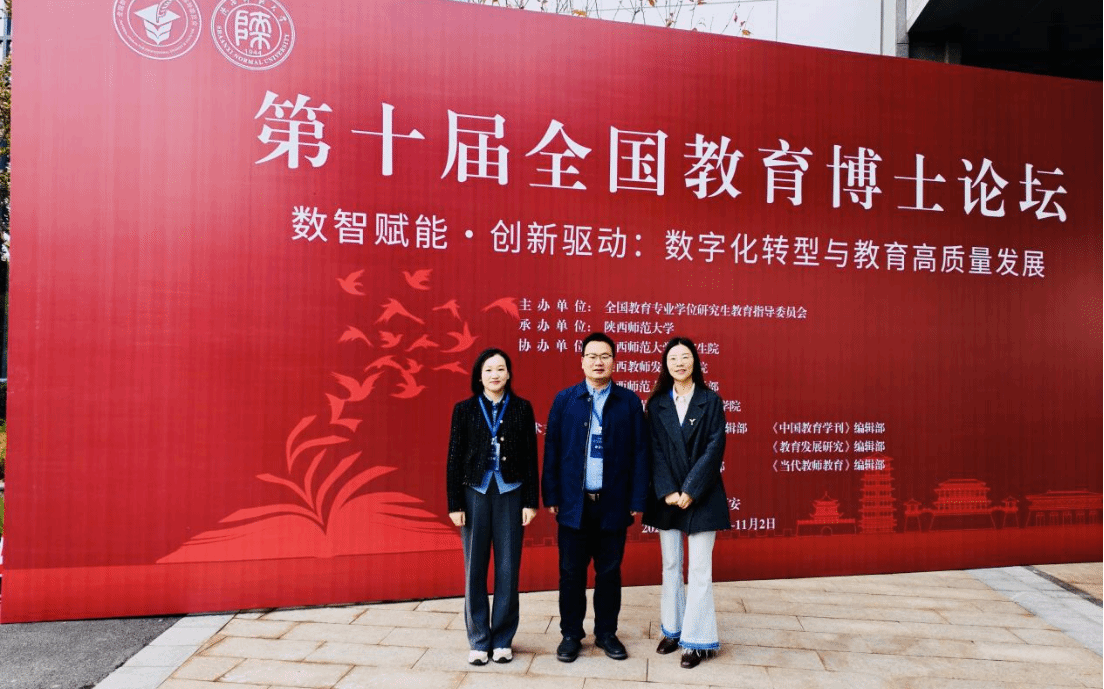 2025年10月31日至11月2日,以“数智赋能・创新驱动:数字化转型与教育高质量发展”为主题的第十届全国教育博士论坛在陕西师范大学长安校区举办。河南大学教育学部副部长、教师教育学院院长郝兆杰受邀担任分论坛点评专家,教师王晓芳、教育博士生左咏梅代表参会。