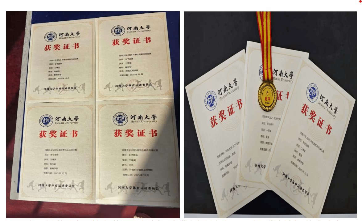 近日,河南大学2025年“新生杯”乒乓球比赛圆满落幕。教育学部乒乓球队奋勇争先、默契协作,一举斩获女子团体第二名、男子单打第一名、男子团体二等奖优异成绩,为学部争光添彩。