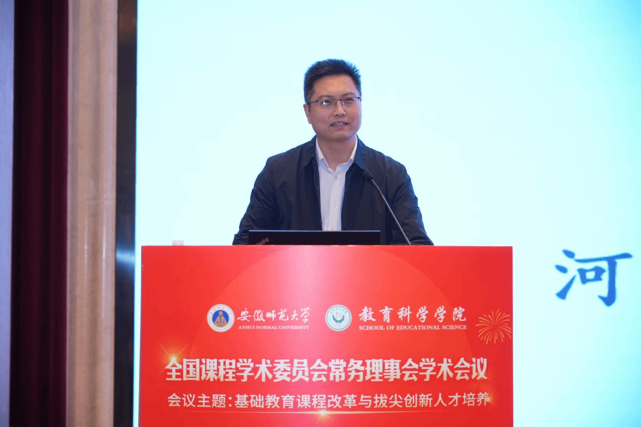 2026年4月25日,全国课程学术委员会常务理事会学术会议在安徽芜湖召开。本次会议的主题为“基础教育课程改革与拔尖创新人才培养”,会议由全国课程学术委员会主办、安徽师范大学教育科学学院承办,来自全国高等院校、科研院所及期刊杂志部门的100余位专家学者参加会议。教育学院副院长、河南省普通高中发展研究中心副主任肖磊教授受邀参会,并作题为《普通高中拔尖创新人才培养的区域实践与路径探索——以河南省为例》的大会主题报告。
