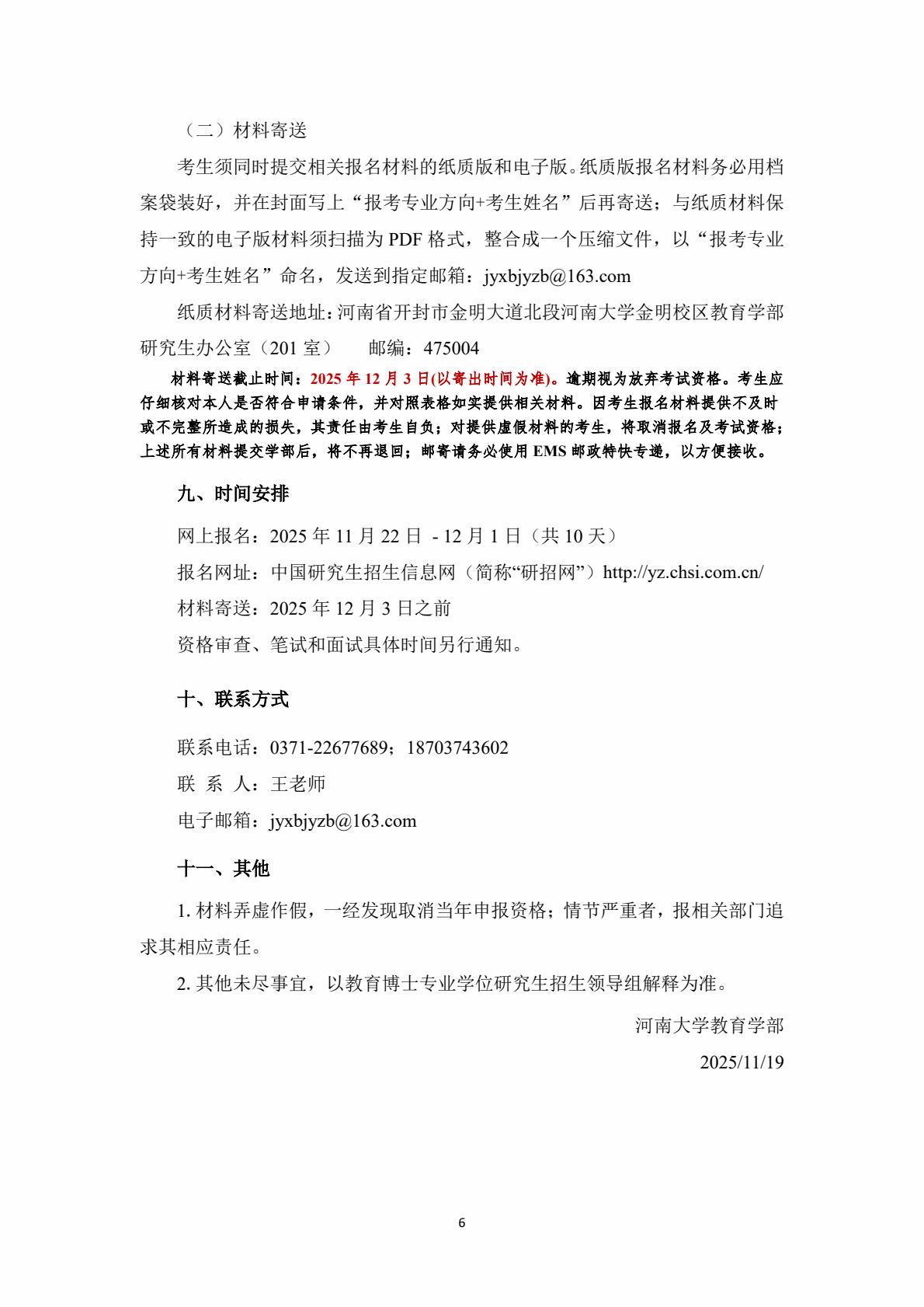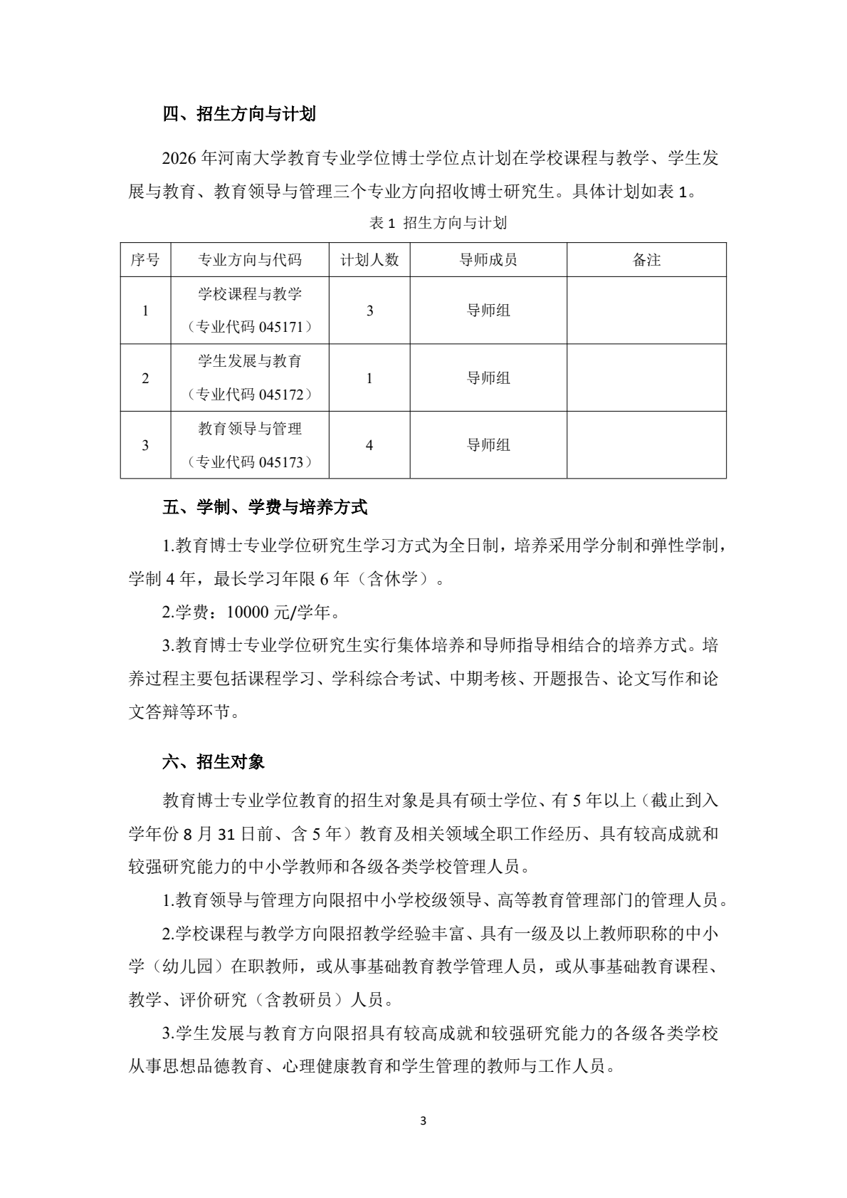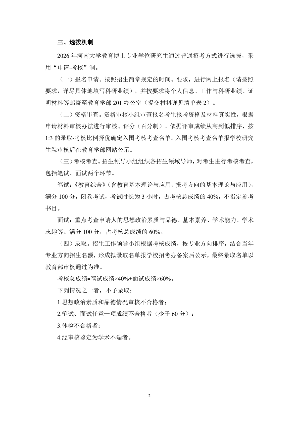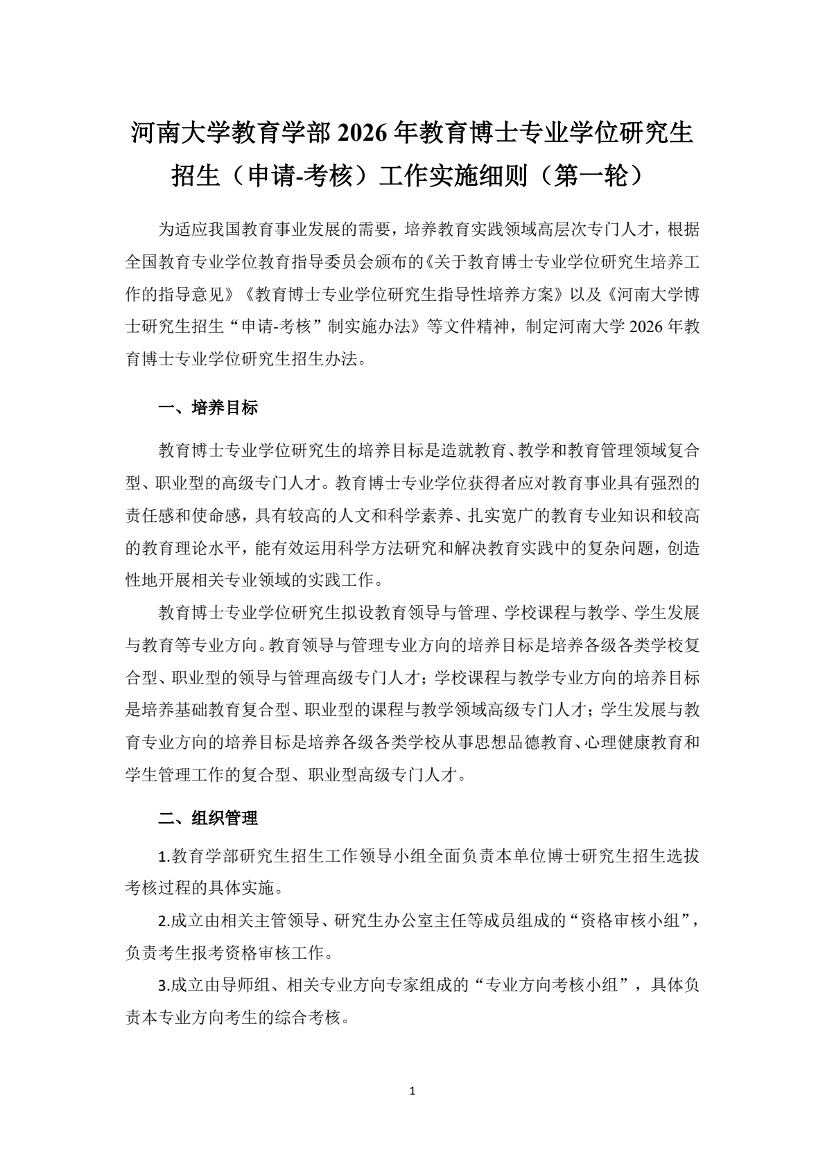河南大学教育学部2026年教育博士专业学位研究生招生(申请-考核)工作实施细则(第一轮)