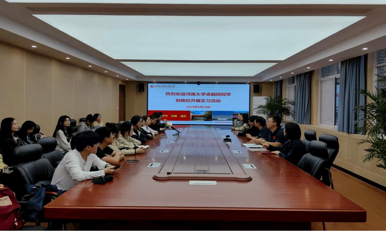 2025 年 9 月 18 日下午,教育学部2025级卓越教师班25名研究生赴河南大学附属中学金明校区开展见习工作。此次见习见面会在河南大学附属中学金明校区二楼会议室召开,卓越教师班班主任权培培老师、河南大学附属中学丁恒主任及黄果树、韦鑫等24位见习学生到场参会。