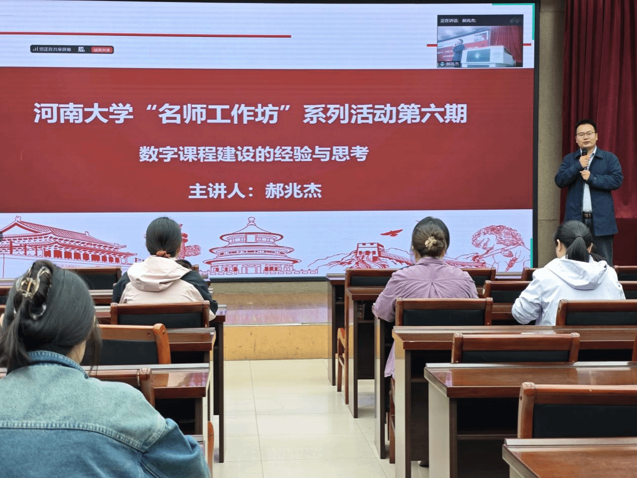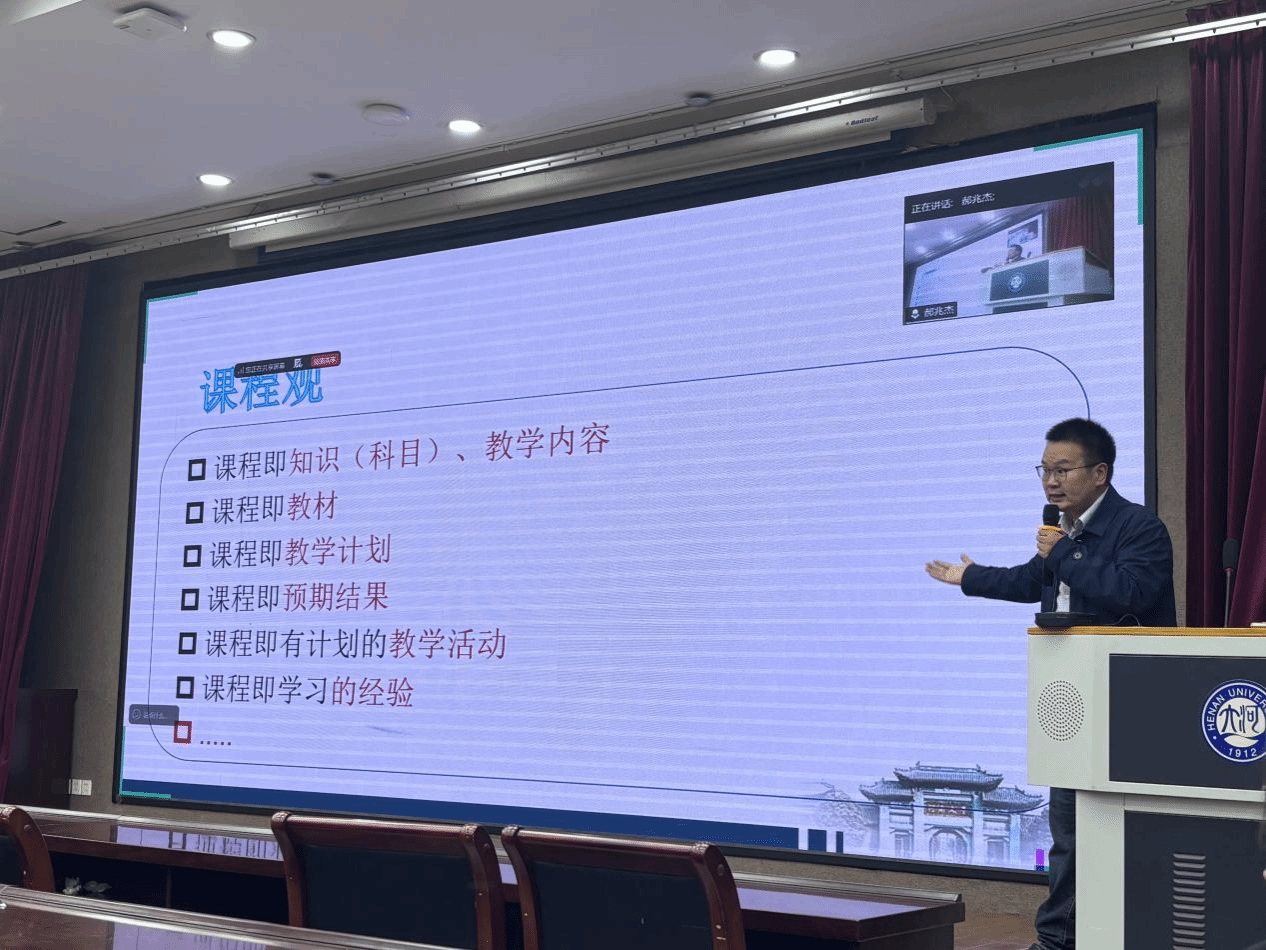 9月26日下午,由教育学部承办的“名师工作坊”系列活动第六期在教育学部一楼报告厅成功举办。活动采用线上线下同步进行的方式,借助腾讯会议搭建同频学习交流平台。活动聚焦“数字课程建设的经验与思考”,特邀河南省教学名师、中原教育教学领军人才郝兆杰教授主讲,学部青年教师、研究生及学校教学名师、研修课负责人等100余人参加。