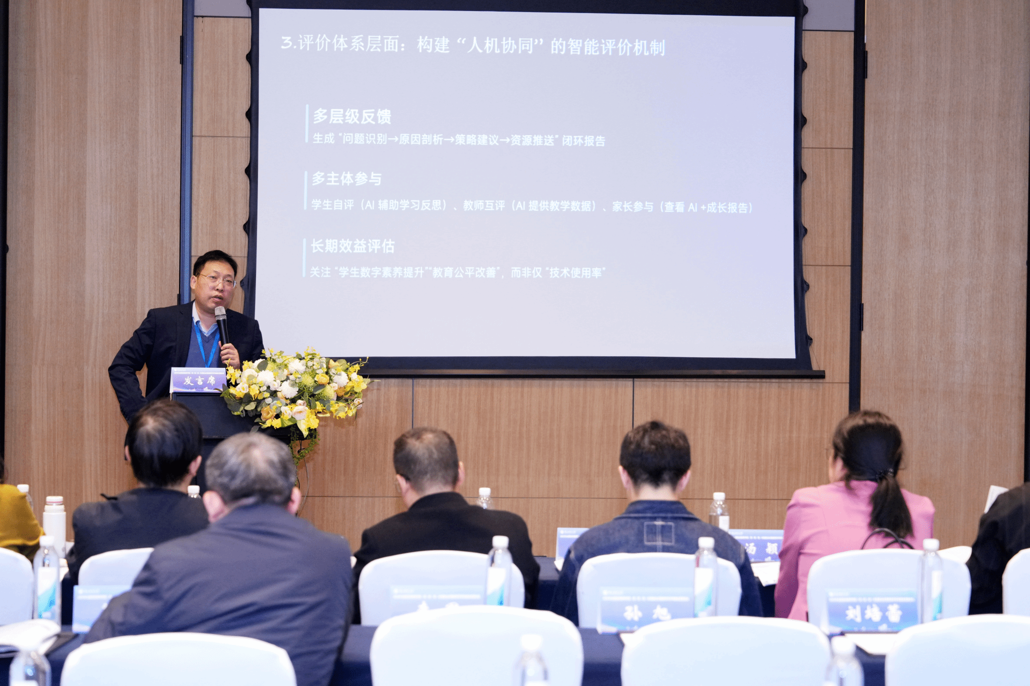赵慧臣在沙龙论坛三作 “人工智能赋能教育中如何遵循教育规律” 的主题分享。他从认知发展、教学互动、评价反馈三大规律出发,系统分析了 AI 教育应用的 “异化困境” 与破解之道;提出人工智能教育应用需通过分层设计适配不同学段学生成长逻辑,重构 “师 - 机 - 生” 三维交互模式,建立过程与结果并重的智能评价体系,守护教育的人文底色。