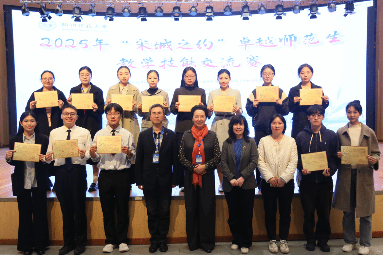 11月15日上午8点,2025年“宋城之约”卓越师范生教学技能交流赛在杭州师范大学西林音乐厅拉开帷幕。首先,河南大学卓越教师班学术牵头导师李桂荣教授发表致辞。李桂荣教授首先代表河南大学卓越教师班全体师生,向杭州师范大学经亨颐教育学院为本次赛事筹备付出辛勤努力的各位领导、老师及同学致以诚挚感谢。她回顾了前两届“宋城之约”教学技能交流赛的丰硕成果,并对全体参赛选手提出殷切期望。随后,杭州师范大学经亨颐教育学院副院长蒋永贵教授致辞。蒋永贵教授对远道而来的河南大学师生表示热烈欢迎,充分肯定了两校卓越班长期协作育人的成效。他强调希望同学们以赛促学、以赛促教,在切磋技艺中提升专业能力,同时预祝本次“宋城之约”技能交流赛取得圆满成功。河南大学13名参赛选手、杭州师范大学11名参赛选手以及杭州师范大学师范生到现场进行观摩。