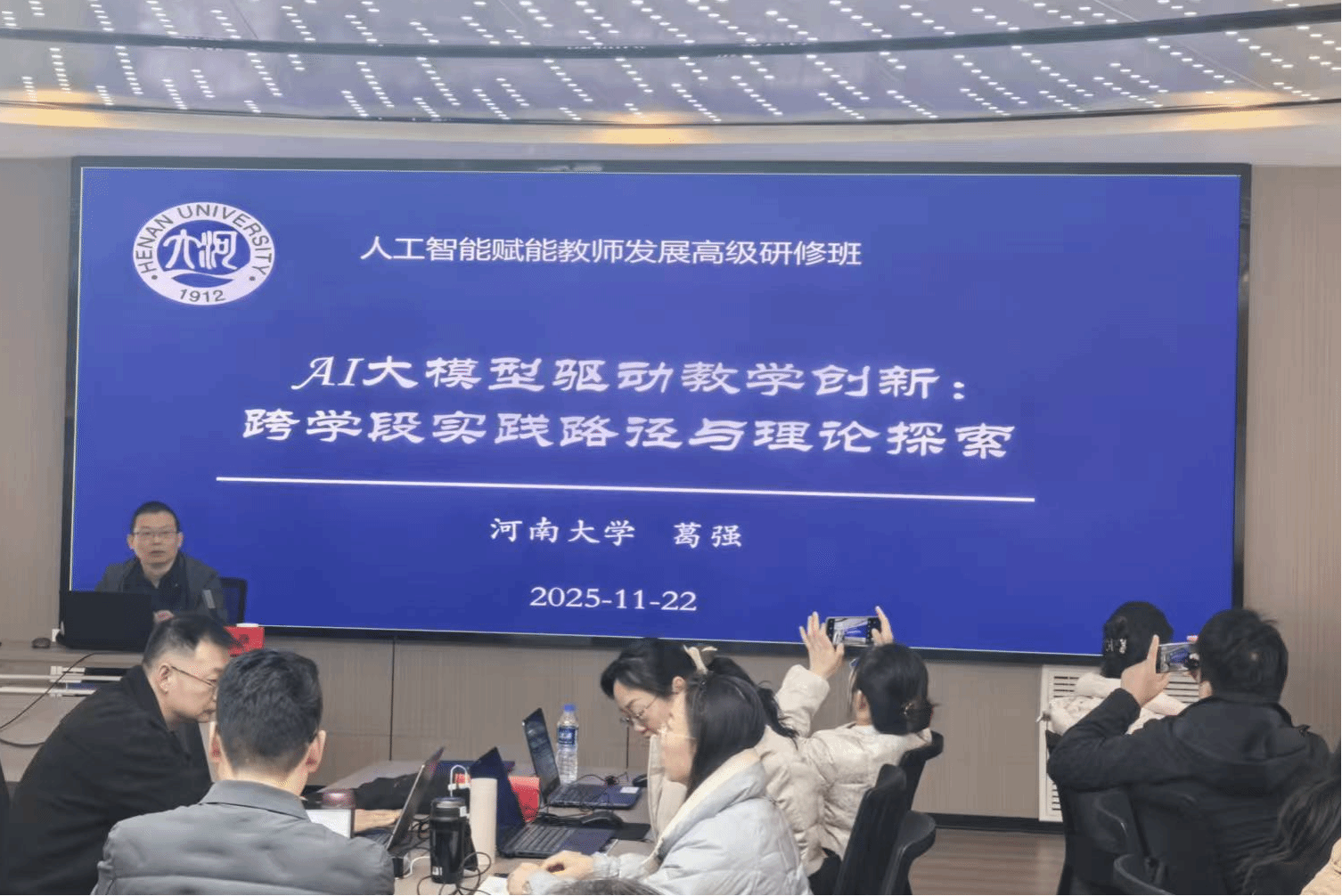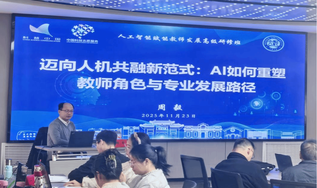 为深入贯彻落实新时代教师队伍建设改革精神,提升教师数字素养与智能技术应用能力,助力新时代教师队伍专业成长。11月21日至23日,由河南大学教育学部主办,河南教育家书院、河南师问源培创新教育科技研究院承办的人工智能赋能教师发展高级研修班在河南大学金明校区顺利开班。河南大学教育学部副部长、教师教育学院院长郝兆杰出席开班典礼,典礼由河南大学教育学部副教授夏淑玉主持。