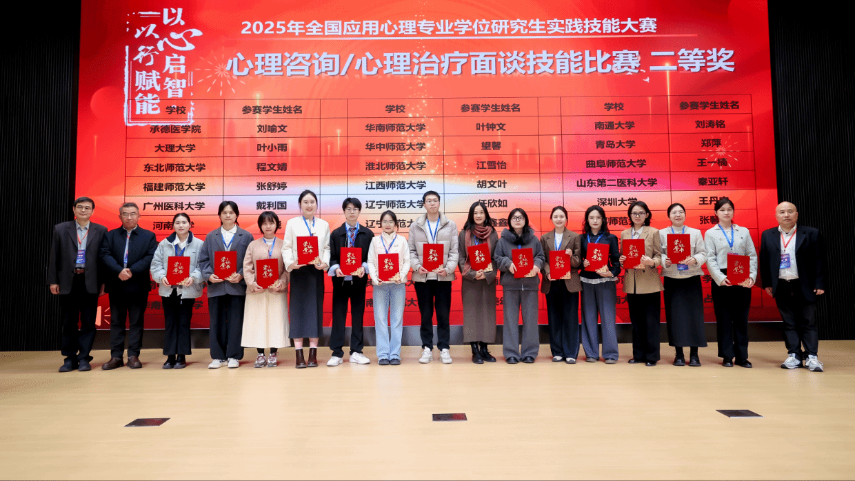 12月6日至7日,2025年全国应用心理专业学位研究生实践技能大赛决赛于华东师范大学顺利举办,我部研究生斩获全国二等奖2项与全国三等奖1项的佳绩,充分展现了扎实的专业功底和良好的实践素养。