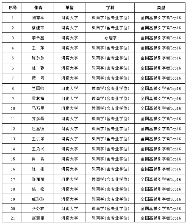 近日,中国知网公布了2025全国高被引学者名单,教育学部21位教师入选中国知网2025高被引学者Top1%,另有20人入选全国高被引学者TOP5%,在省内同学科中居于首位、国内居于前列。