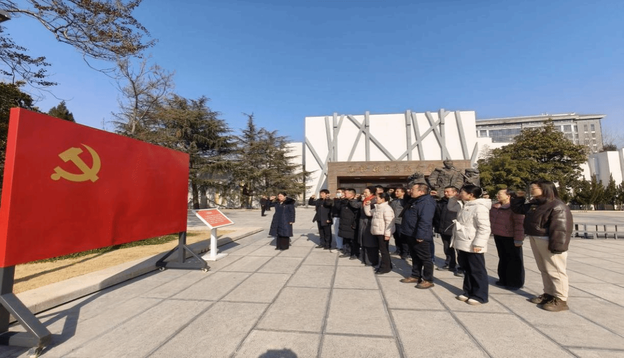在焦裕禄纪念馆门前,党员们面对鲜红的党旗庄严重温入党誓词,铿锵有力的誓言回荡在纪念馆内,既是对初心使命的再宣誓,也是对革命先辈的再致敬。