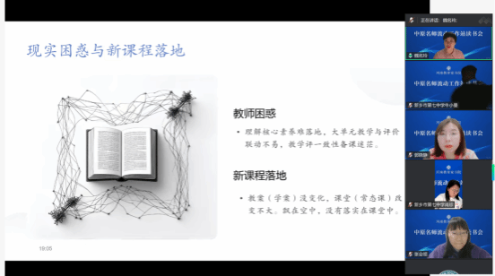 本次读书会围绕引读、呼应、点评、互动四个环节展开。活动伊始,新乡市教育科学研究院院长魏名玲先点明课程改革的持续性并说明本书对教师教学困惑的破解作用,再介绍该书的解析逻辑、核心内容与双重价值,最后解析4个核心关键词的内涵及教学落地路径。
