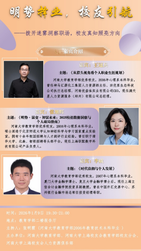 2026年1月9日晚,教育学部特邀上海校友会三位优秀校友——王冠兵、张旭辉、李威为在校学生带来了一场内容丰富、视角多元的职业发展盛宴。会议由教育学部优秀校友张明霞主持。2022级本科生辅导员朱文芳老师及在校学生参加了本次专题报告会。