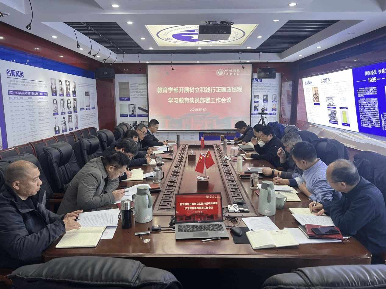 3月4日下午,教育学部党委召开树立和践行正确政绩观学习教育动员部署会,传达学习相关会议精神,部署安排学部学习教育工作。学部全体领导班子成员和部分科室负责人参加会议。会议由学部党委常务副书记蔡建东主持。