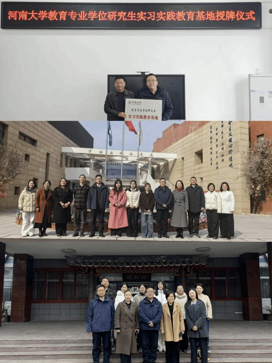 2026年3月16日,河南大学教育学部2024级小学教育专业部分硕士研究生,在教师教育学院副院长王晋教授,教育学院副院长、小学教育专业负责人肖磊教授,教师教育学院副教授王晓芳以及小学教育专业研究生导师陈雪强的带领下,前往三所学校正式开展专业实习工作。与此同时,与郑州市航空港区护航路小学、郑州市航空港区实验小学、许昌市实验小学举行了“教育专业学位研究生实习实践教育基地”授牌仪式。
