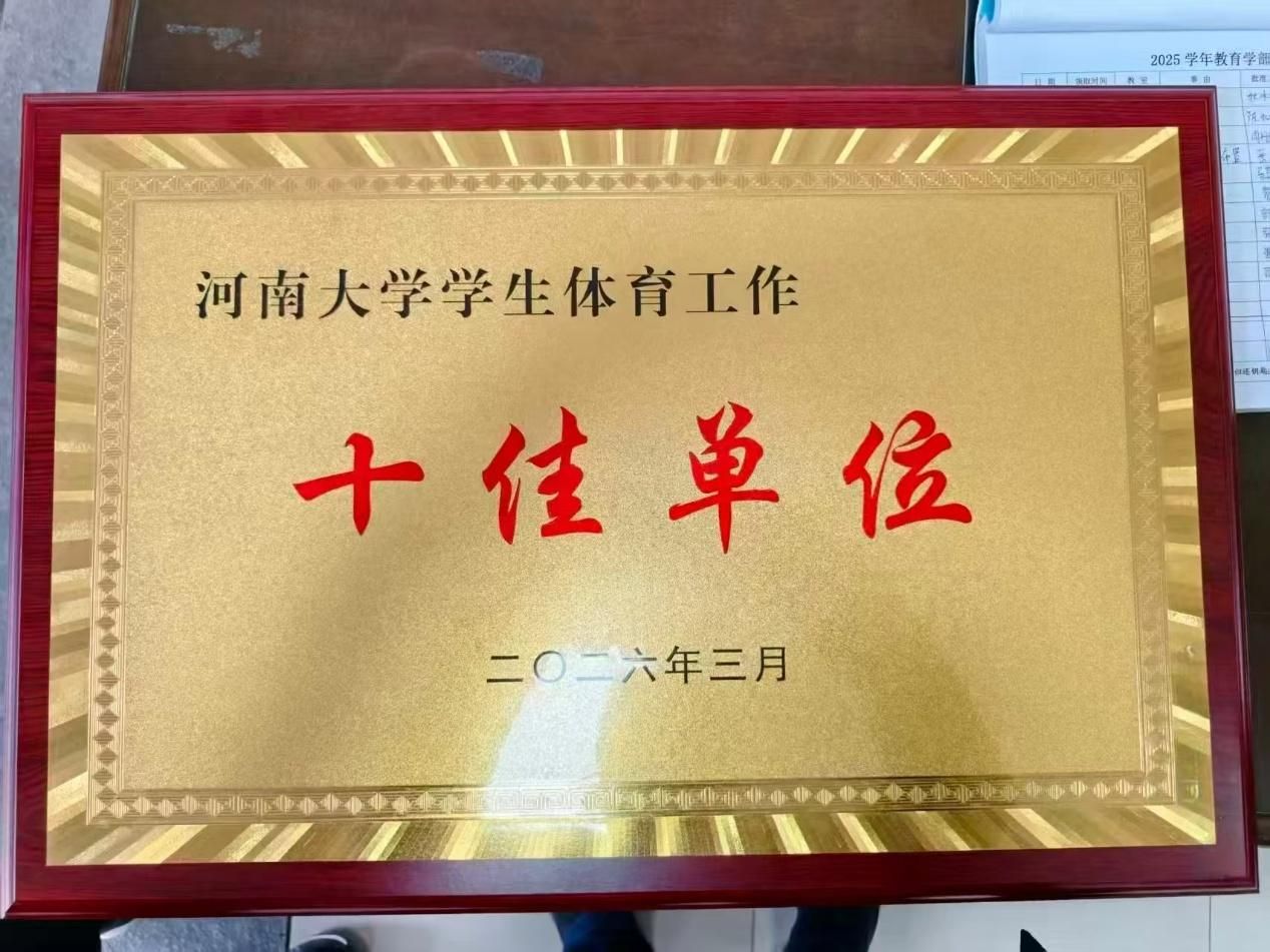 近日,河南大学2025年度体育工作评优奖先工作圆满完成。教育学部凭借师生在赛场上奋勇拼搏、捷报频传,获得多项荣誉和优异的体育工作成效,连续两年荣获河南大学学生体育工作“十佳单位”称号,彰显了教育学部蓬勃向上的体育精神与育人成果。