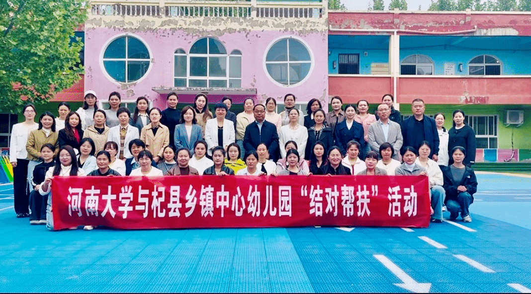 2026年4月16日,河南大学与杞县乡镇中心幼儿园“结对帮扶”项目第二次研修活动在杞县阳堌镇第一中心幼儿园顺利举行。河南大学教育学部教师张亚杰、谭蓓佳、宋丽芹及学生,开封市教育体育局、开封市教育科学研究院、杞县教育体育局相关负责同志,以及杞县各乡镇中心幼儿园的园长和骨干教师代表共同参与了本次活动。